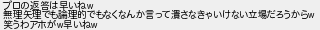 プロの返答は早いね 無理矢理でも論理的でもなくなんか言って潰さなきゃいけない立場だろうから 笑うわアホが早いね