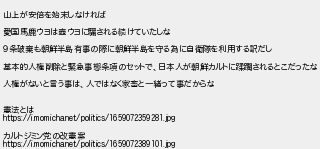 山上が安倍を始末しなければ 愛国馬鹿ウヨはウヨにされる続けていたしな 9条破棄も朝鮮半島有事の際に朝鮮半島を守る為に自衛隊を利用する訳だし 基本的人権削除と緊急事態条項のセットで日本人が朝鮮カルトにされるとこだったな 人権がないと言う事は人ではなく家畜と一緒って事だからな 憲法とは カルトジミン党の改憲案