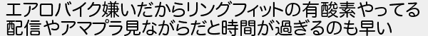 エアロバイク嫌いだからリングフィットの有酸素やってる 配信やアマプラ見ながらだと時間が過ぎるのも早い