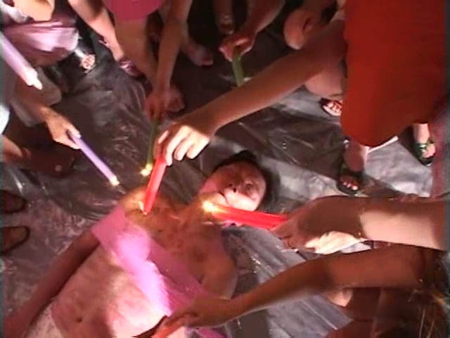 大勢の女性の前で尻に焼き印入れられて熱くて痛くて悶える