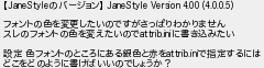448: [sage] 2019/05/29(水) 15:10:00.43 ID:LlT/h0yx0 【JaneStyleのバージョン】 JaneStyle Version 4.00 (4.0.0.5) フォントの色を変更したいのですがさっぱりわかりません スレのフォントの色を変えたいのでattrib.iniに書き込みたい 設定 色フォントのところにある銀色と赤をattrib.iniで指定するには どこをどのように書けばいいのでしょうか? http://egg.5ch.net/test/read.cgi/software/1551951740/448