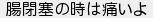 750: [sage] 2022/09/25(日) 22:28:42.38 ID:8PjnWrES0 腸閉塞の時は痛いよ http://egg.5ch.net/test/read.cgi/software/1663503935/750