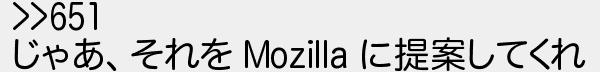 653: (ワッチョイ 1f58-GAFQ) [sage] 2022/12/18(日) 08:12:43.92 ID:KroxNxOW0 >>651 じゃあ、それを Mozilla に提案してくれ http://egg.5ch.net/test/read.cgi/software/1668358693/653