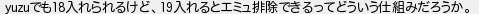 39: 警備員[Lv.41] (マグーロ 4a74-oqx5) [sage] 2024/10/10(木) 18:09:51.05 ID:LyJpiLpf01010 yuzuでも18入れられるけど、19入れるとエミュ排除できるってどういう仕組みだろうか。 http://egg.5ch.net/test/read.cgi/software/1728362194/39