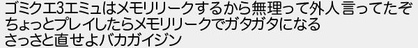 ゴミクエエミュはメモリリークするから無理って外人言ってたぞ ちょっとプレイしたらメモリリークでガタガタになる さっさと直せよバカガイジン