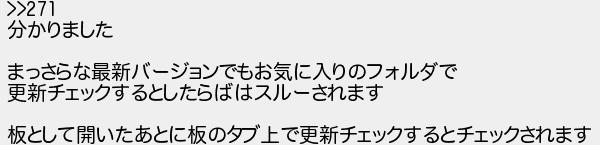 分かりました まっさらな最新バージョンでもお気に入りのフォルダで 更新チェックするとしたらばはスルーされます 板として開いたあとに板のタブ上で更新チェックするとチェックされます
