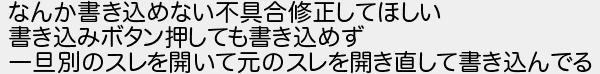 なんか書き込めない不具合修正してほしい 書き込みボタン押しても書き込めず 一旦別のスレを開いて元のスレを開き直して書き込んでる