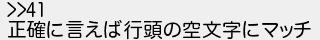 47: [] 2025/08/07(木) 21:16:18.16 ID:TmDdd1Xe0 >>41 正確に言えば行頭の空文字にマッチ http://egg.5ch.net/test/read.cgi/software/1754326352/47