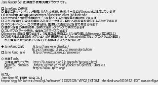 1: (ワッチョイW 2001:268:9b67:412d:*) [] 2026/04/05(日) 00:48:28.51 ID:porIJ49I0 JaneXenoは5ch互換掲示板用汎用ブラウザです。 □JaneXenoの特徴 ○書きこみウィンドウ、メモ欄、AA入力支援、検索バーなどがUnicodeに対応しています ○Unicode関連の補足説明 https://janexeno.client.jp/#unicode ○command.datにWeb翻訳ページを記入すると外国語の翻訳ができます ○スキンを使って自分の書き込みをマークする、自分への返答を通知することができます ○サウンドイベント ログ取得成功、重要レス通知などを音で発せられます ○翻訳・辞書の検索結果、説明文をポップアップで表示できます ○スレタブのマーク表示、色をカスタマイズできます ○bregonig.dllを活用できます。 (鬼車正規表現エンジンを内蔵したBregexp.dll互換DLL) ○OSの「地域と言語のオプション」の「標準形式」と「Unicode対応でないプログラムの言語」 が日本語に設定されていなくても動作するようになりました ◆JaneXeno公式 https://janexeno.client.jp/ https://janexeno.client.jp/janexenobeta.htm □Jane Xeno Wiki https://www23.atwiki.jp/janexeno/ ◇支援Tools 正規表現ライブラリ http://k-takata.o.oo7.jp/mysoft/bregonig.html OpenSSL binaries https://github.com/IndySockets/OpenSSL-Binaries SQlite https://www.sqlite.org/ 前スレ JaneXeno 92 【質問・総合スレ】 https://egg.5ch.io/test/read.cgi/software/1773227028/ VIPQ2_EXTDAT: checked:vvvv:1000:512:: EXT was configured http://egg.5ch.io/test/read.cgi/software/1775317708/1