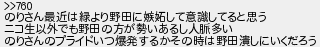 のりさん最近は緑より野田に嫉妬して意識してると思う ニコ生以外でも野田の方が勢いあるし人脈多い のりさんのプライドいつ爆発するかその時は野田潰しにいくだろう