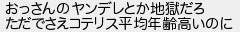おっさんのヤンデレとか地獄だろ ただでさえコテリス平均年齢高いのに
