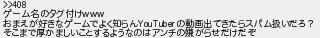 ゲーム名のタグ付け おまえが好きなゲームでよく知らんの動画出てきたらスパム扱いだろ? そこまで厚かましいことするようなのはアンチの嫌がらせだけだぞ