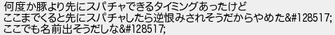 何度か豚より先にスパチャできるタイミングあったけど ここまでくると先にスパチャしたら逆恨みされそうだからやめた ここでも名前出そうだしな