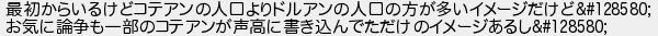 最初からいるけどコテアンの人口よりドルアンの人口の方が多いイメージだけど お気に論争も一部のコテアンが声高に書き込んでただけのイメージあるし