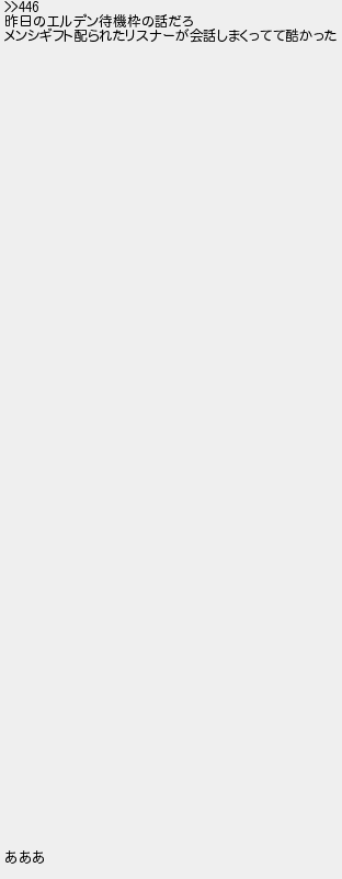 昨日のエルデン待機枠の話だろ メンシギフト配られたリスナーが会話しまくってて酷かった あああ