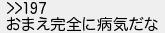 203: [] 2022/09/14(水) 18:23:06.20 >>197 おまえ完全に病気だな http://egg.5ch.net/test/read.cgi/streaming/1663146345/203