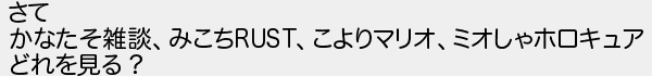 さて かなたそ雑談みこちこよりマリオミオしゃホロキュア どれを見る?