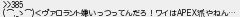 389: (スッップ Sdbf-9N+m) [sage] 2022/09/23(金) 12:53:08.79 ID:hmhCWupkd >>385 (⌒,_ゝ⌒)<ヴァロラント嫌いっつってんだろ!ワイはAPEX派やねん… http://egg.5ch.net/test/read.cgi/streaming/1663195435/389