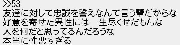 友達に対して忠誠を誓えなんて言う輩だからな 好意を寄せた異性には一生尽くせだもんな 人を何だと思ってるんだろうな 本当に性悪すぎる