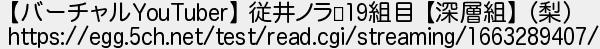 4: [sage] 2022/09/16(金) 09:53:39.89 【バーチャルYouTuber】 従井ノラ⚰19組目 【深層組】 (梨) https://egg.5ch.net/test/read.cgi/streaming/1663289407/ http://egg.5ch.net/test/read.cgi/streaming/1663272613/4