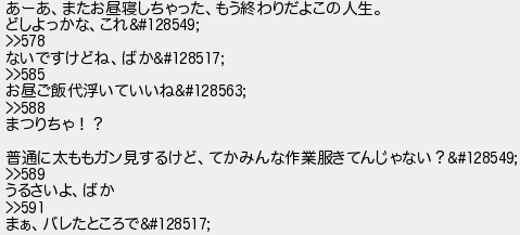 あーあまたお昼寝しちゃったもう終わりだよこの人生 どしよっかなこれ ないですけどねばか お昼ご飯代浮いていいね まつりちゃ!? 普通に太ももガン見するけどてかみんな作業服きてんじゃない? うるさいよばか まぁバレたところで