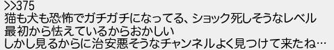 379: (ワッチョイW 07ee-vqJ2 [160.237.133.87]) [sage] 2022/11/21(月) 09:45:06.74 ID:Hu66pVWp0 >>375 猫も犬も恐怖でガチガチになってる、ショック死しそうなレベル 最初から怯えているからおかしい しかし見るからに治安悪そうなチャンネルよく見つけて来たね… http://egg.5ch.net/test/read.cgi/streaming/1663456101/379