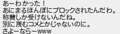 あーわかった! あにまるほんぽにブロックされたんだわ 称賛しか受けないんだね 別に蔑むコメとかじゃないのに さよーならー