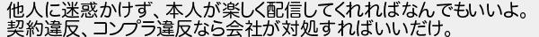 他人に迷惑かけず本人が楽しく配信してくれればなんでもいいよ 契約違反コンプラ違反なら会社が対処すればいいだけ