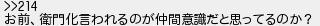 238: [sage] 2022/10/14(金) 12:35:38.38 >>214 お前、衛門化言われるのが仲間意識だと思ってるのか? http://egg.5ch.io/test/read.cgi/streaming/1665717841/238