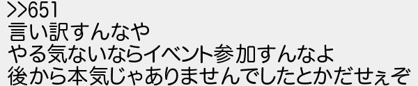 言い訳すんなや やる気ないならイベント参加すんなよ 後から本気じゃありませんでしたとかだせぇぞ