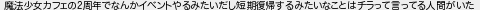 魔法少女カフェの周年でなんかイベントやるみたいだし短期復帰するみたいなことはチラって言ってる人間がいた