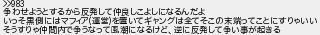 争わせようとするから反発して仲良しこよしになるんだよ いっそ黒側にはマフィア運営を置いてギャングは全てそこの末端ってことにすりゃいい そうすりゃ仲間内で争うなって風潮になるけど逆に反発して争い事が起きる