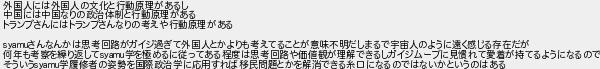 外国人には外国人の文化と行動原理があるし 中国には中国なりの政治体制と行動原理がある トランプさんにはトランプさんなりの考えや行動原理がある さんなんかは思考回路がガイジ過ぎて外国人とかよりも考えてることが意味不明だしまるで宇宙人のように遠く感じる存在だが 何年も考察を繰り返して学を極めるに従ってある程度は思考回路や価値観が理解できるしガイジムーブに見慣れて愛着が持てるようになるので そういう学履修者の姿勢を国際政治学に応用すれば移民問題とかを解消できる糸口になるのではないかというのはある