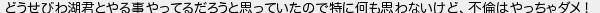 どうせびわ湖君とやる事やってるだろうと思っていたので特に何も思わないけど不倫はやっちゃダメ!