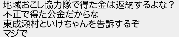 地域おこし協力隊で得た金は返納するよな? 不正で得た公金だからな 東成瀬村といけちゃんを告訴するぞ マジで