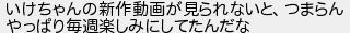 いけちゃんの新作動画が見られないとつまらん やっぱり毎週楽しみにしてたんだな