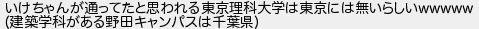いけちゃんが通ってたと思われる東京理科大学は東京には無いらしい 建築学科がある野田キャンパスは千葉県