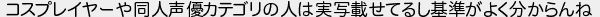 コスプレイヤーや同人声優カテゴリの人は実写載せてるし基準がよく分からんね