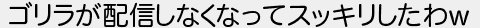 653: 警備員[Lv.4][新芽] [] 2025/09/02(火) 23:19:24.30 ID:b/nBItte0 ゴリラが配信しなくなってスッキリしたわw http://egg.5ch.net/test/read.cgi/streaming/1756528254/653