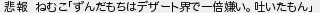 悲報 ねむこずんだもちはデザート界で一倍嫌い吐いたもん