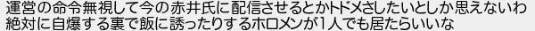 運営の命令無視して今の赤井氏に配信させるとかトドメさしたいとしか思えないわ 絶対に自爆する裏で飯に誘ったりするホロメンが人でも居たらいいな