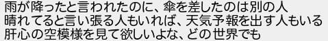 雨が降ったと言われたのに傘を差したのは別の人 晴れてると言い張る人もいれば天気予報を出す人もいる 肝心の空模様を見て欲しいよなどの世界でも