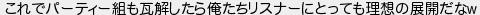 これでパーティー組も瓦解したら俺たちリスナーにとっても理想の展開だな