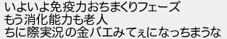 いよいよ免疫力おちまくりフェーズ もう消化能力も老人 ちに際実況の金バエみてぇになっちまうな