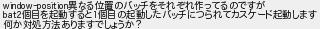 異なる位置のバッチをそれぞれ作ってるのですが 個目を起動すると個目の起動したバッチにつられてカスケード起動します 何か対処方法ありますでしょうか?