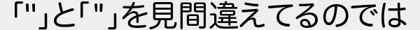 461: [sage] 2023/10/13(金) 17:19:46.92 ID:5yGgcXlN 「''」と「"」を見間違えてるのでは http://mevius.5ch.net/test/read.cgi/tech/1663153441/461