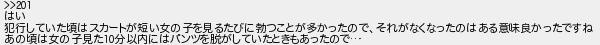 はい 犯行していた頃はスカートが短い女の子を見るたびに勃つことが多かったのでそれがなくなったのはある意味良かったですね あの頃は女の子見た分以内にはパンツを脱がしていたときもあったので