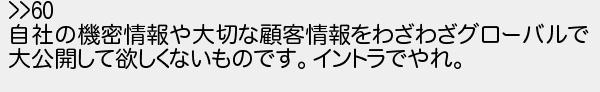 自社の機密情報や大切な顧客情報をわざわざグローバルで 大公開して欲しくないものですイントラでやれ