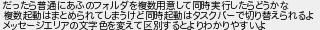 101: [sage] 2025/04/17(木) 20:05:39.30 ID:KlMaxSsU0 だったら普通にあふのフォルダを複数用意して同時実行したらどうかな 複数起動はまとめられてしまうけど同時起動はタスクバーで切り替えられるよ メッセージエリアの文字色を変えて区別するとよりわかりやすいよ http://egg.5ch.io/test/read.cgi/software/1728355607/101