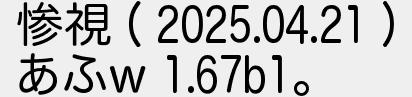 108: [sage] 2025/04/24(木) 08:53:42.98 ID:lgKywZgB0 惨視 ( 2025.04.21 ) あふw 1.67b1。 http://egg.5ch.io/test/read.cgi/software/1728355607/108